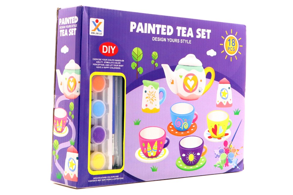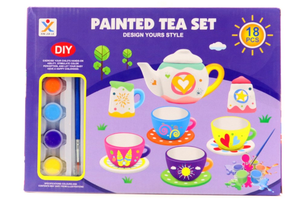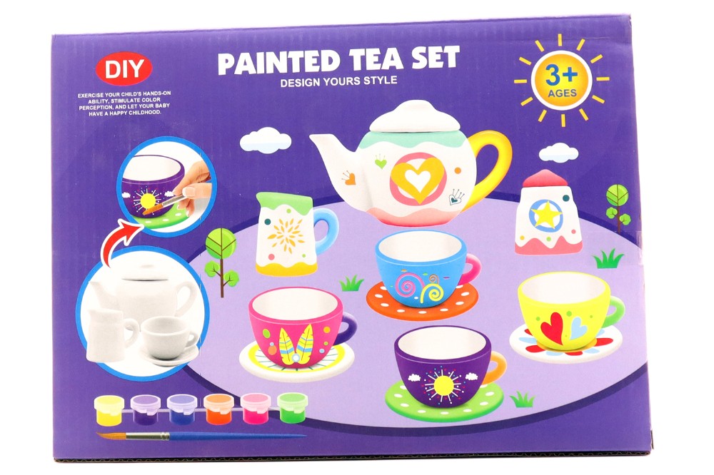 Ceramic Painted Tea Set - 15 Pcs. Washable To Repaint. Same As Pic. Best Quality Material. Best Gift for Kids.