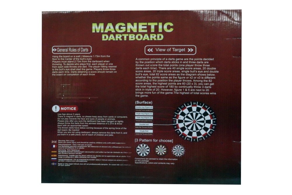 Includes: 1 dartboard and 6 Magnetic Darts.