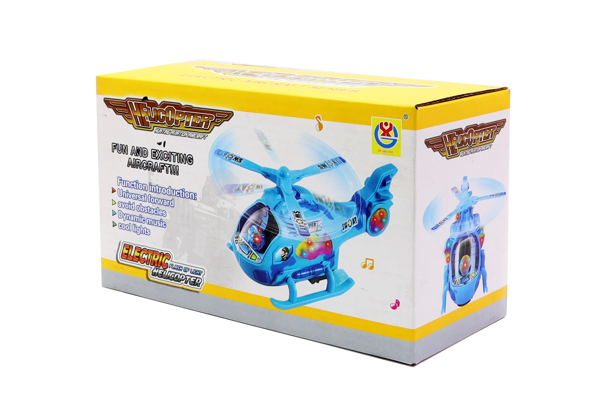 FUN AND EXCITING AIRCRAFTIFunction introduction: Universal forward avoid obstaclesDynamic musiccool lights ELECTRIC FLASH OF LIGHT HELICOPTER