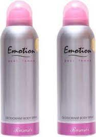 Rasasi Emotion pour Femme a woman living under a lucky star. She is unique, joyful, strong, passionate and always undoubtedly herself. The packaging is very luxurious having rich pearl box. The violet and green colours of the bottle create a mesmerizing fusion of metal and glass. The fragrance is luxurious, powerful and sensual. A melange of heady flowers and fruit nectars.